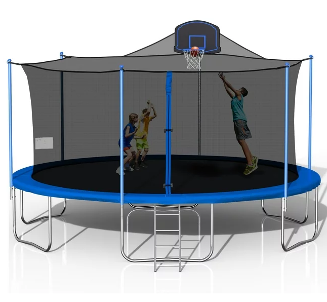 Jump Into Fun 16 FT Trampoline for Adults and Kids, Outdoor Trampoline with Basketball Hoop, Enclosure, Waterproof Mat and Ladder, Trampoline for Backyard for 8-9 Kids