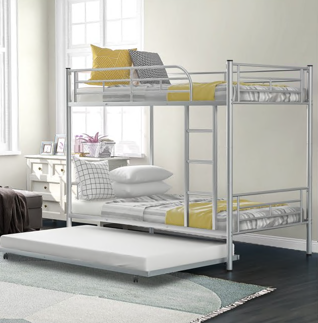 You're viewing: Jump Into Fun Bunk Bed Twin over Twin, Metal Bunk Bed for Kids Teens Adults Convertible into 2 Bed with Trundle, 42 Sturdy Slats, Guard Rail & Ladder, Hold 600lb for Guest Room, Noise Free, Silver$399.99