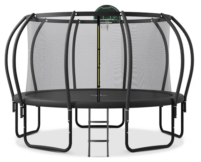Jump Into Fun Trampoline for 5-6 Kids/ 2-3 Adults, 12FT 14FT 15FT 16FT 1200LBS Trampoline with Enclosure, Basketball Hoop, Wind Stakes, Ladder, Outdoor Recreational Trampoline