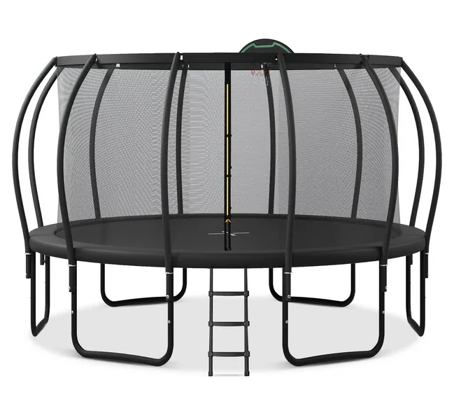 Jump Into Fun Trampoline for 8-9 Kids/ 3-5 Adults, 12FT 14FT 15FT 16FT 1500LBS Trampoline with Enclosure, Basketball Hoop, Wind Stakes, Ladder, Outdoor Recreational Trampoline