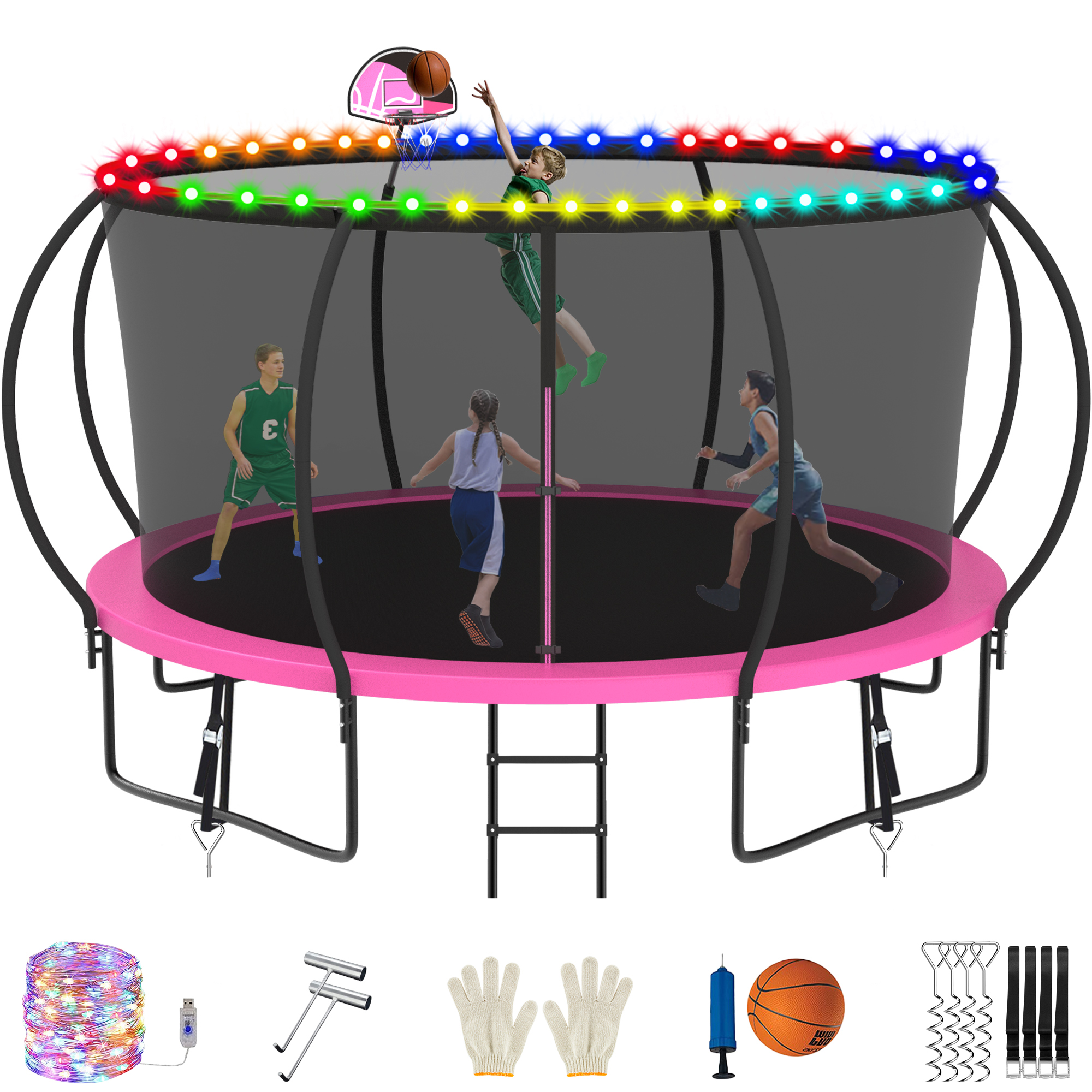 You're viewing: Jump Into Fun Trampoline, 14FT 1400LBS Trampoline for 6-7 Kids, Pumpkin Trampolines with Enclosure, LED Light, Basketball Hoop,Outdoor Galvanized Anti-Rust Coating Recreational Trampoline for Gifts$859.99