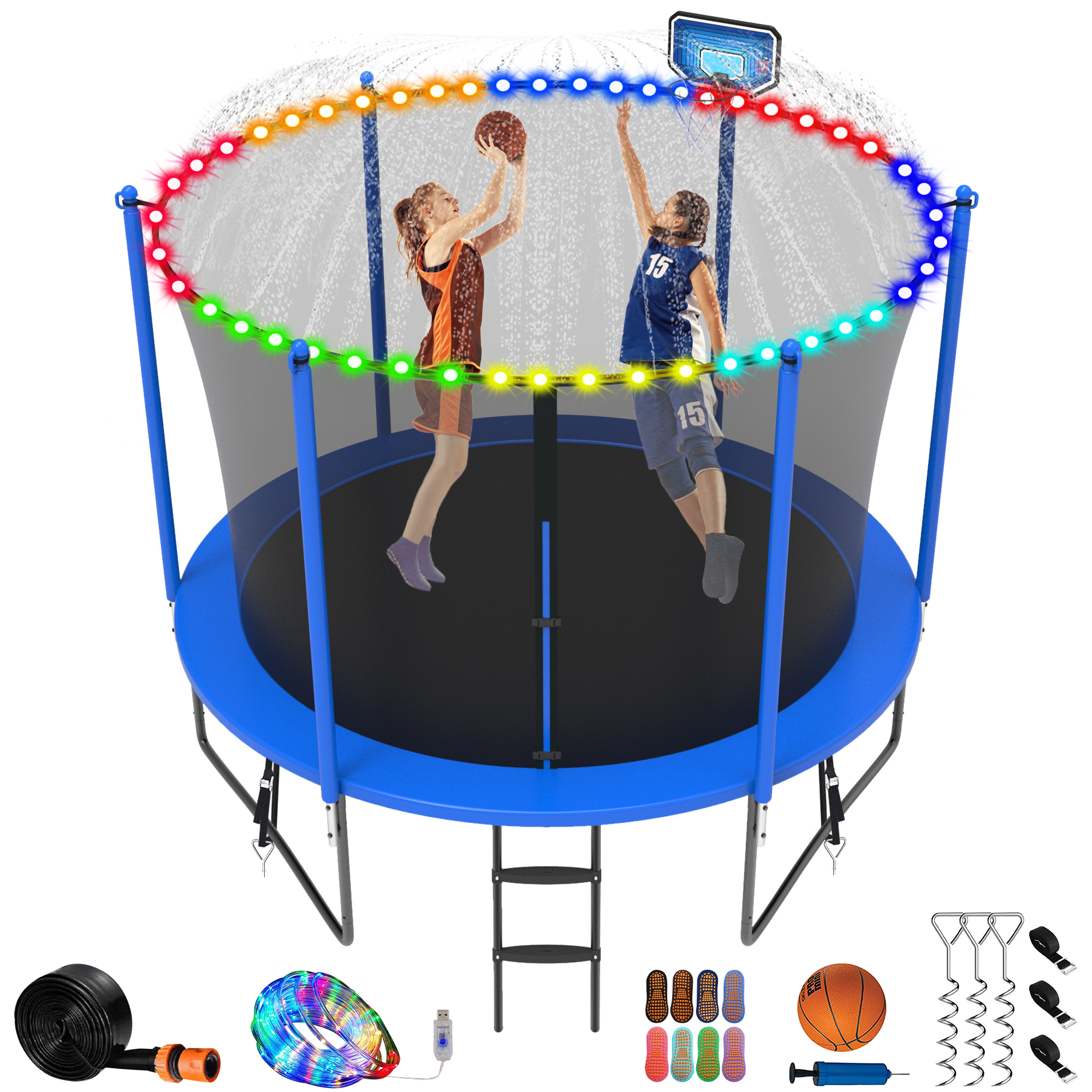 Jump Into Fun Trampoline 8 10 12 14 15 16FT, 1000LBS Trampoline for Kids, Trampolines with Enclosure, Basketball Hoop, Wind Stakes, More Gifts, Outdoor Galvanized Anti-Rust Coating Trampoline