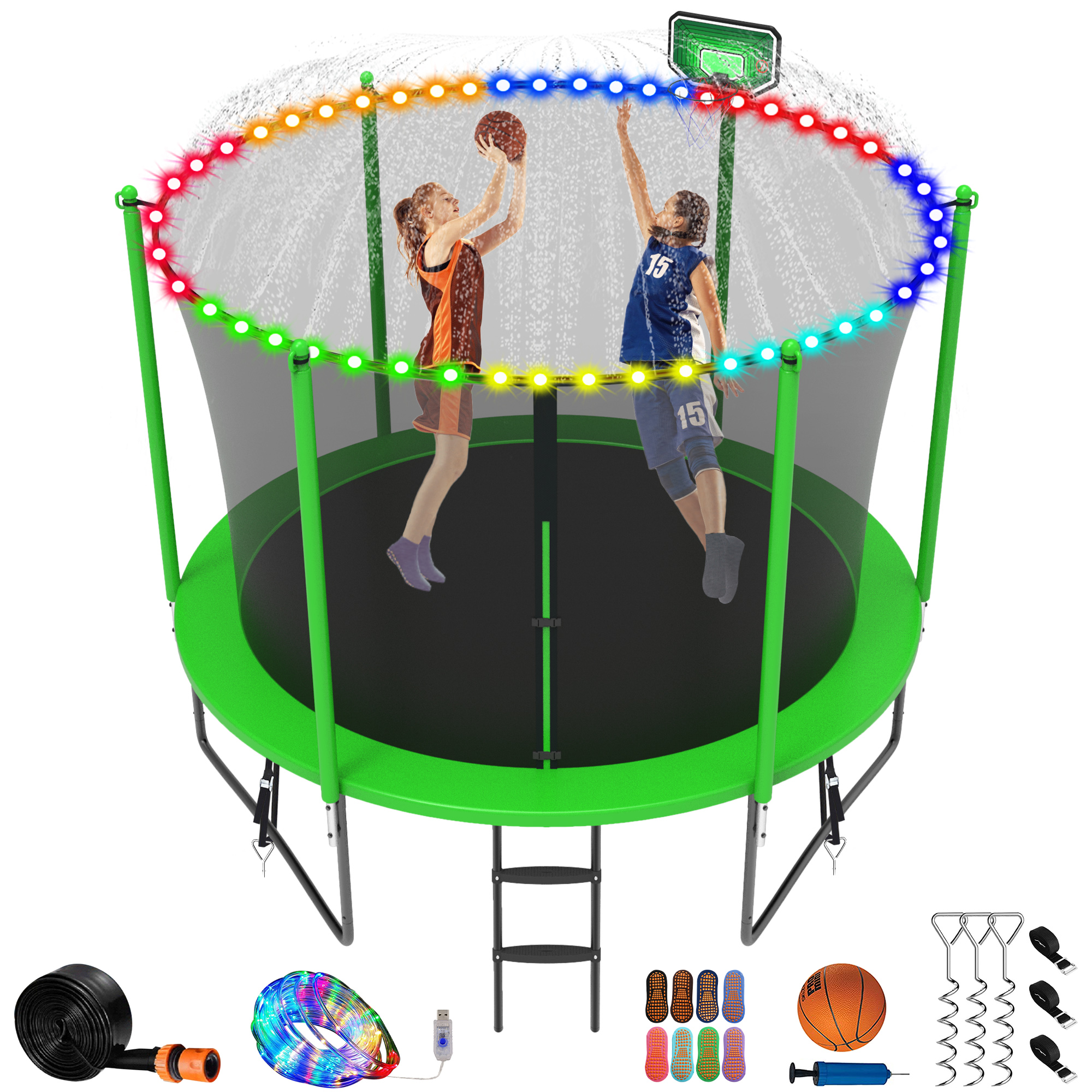 Jump Into Fun Trampoline 8 10 12 14 15 16FT, 800LBS Trampoline for Kids, Trampolines with Enclosure, Basketball Hoop, Wind Stakes, More Gifts, Outdoor Galvanized Anti-Rust Coating Trampoline