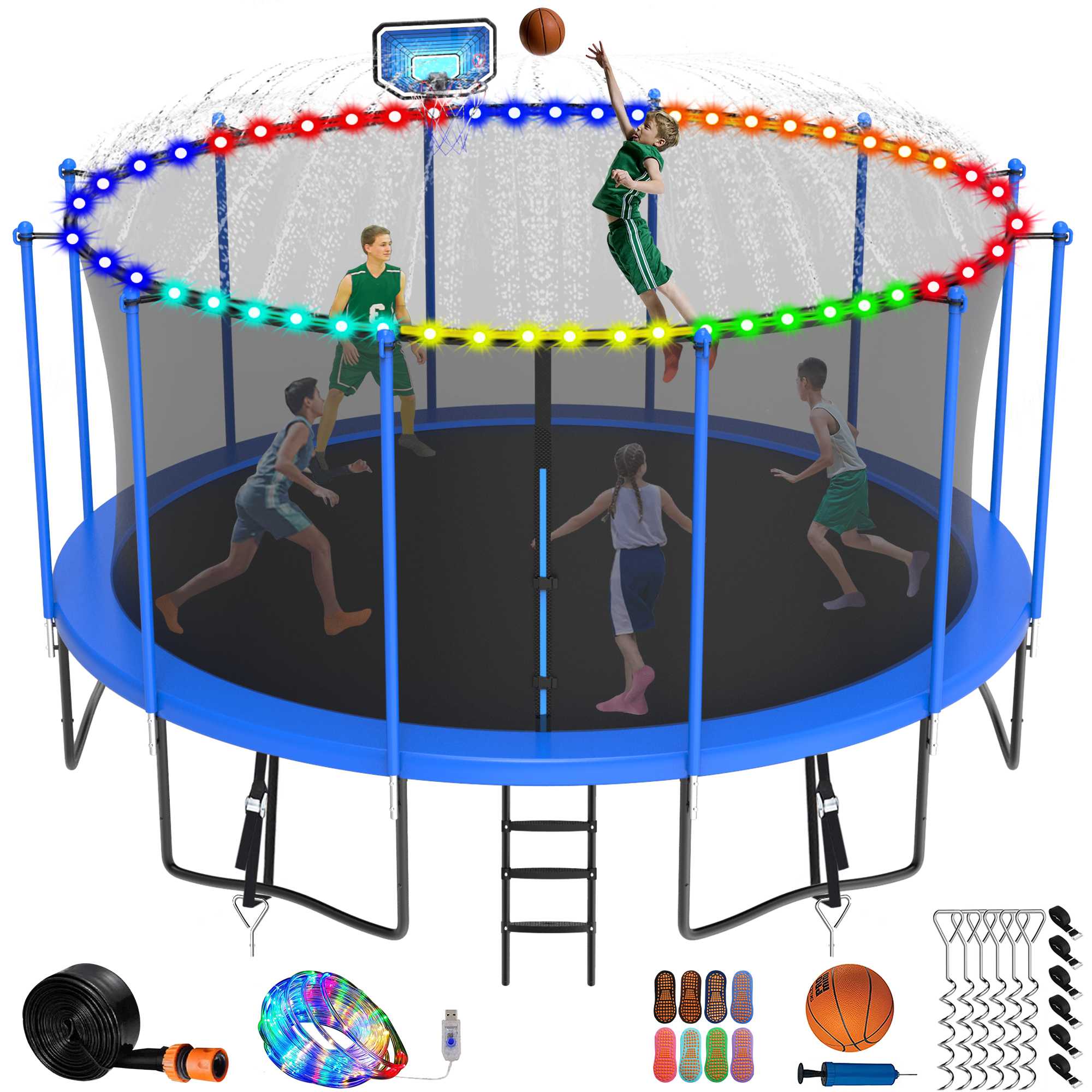 Jump Into Fun Trampoline 8 10 12 14 15 16FT, 1500LBS Trampoline for Kids Adults, Trampolines with Enclosure, Basketball Hoop, Wind Stakes, More Gifts, Outdoor Galvanized Anti-Rust Coating Trampoline quantity