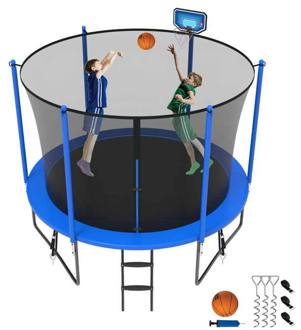 Jump Into Fun Trampoline 8FT 10FT 12FT 14FT 15FT 16FT, Trampoline for Adults and Kids with Enclosure, Basketball Hoop, Wind Stakes and AntiRust Coating, 800LBS Outdoor Recreational Trampolines