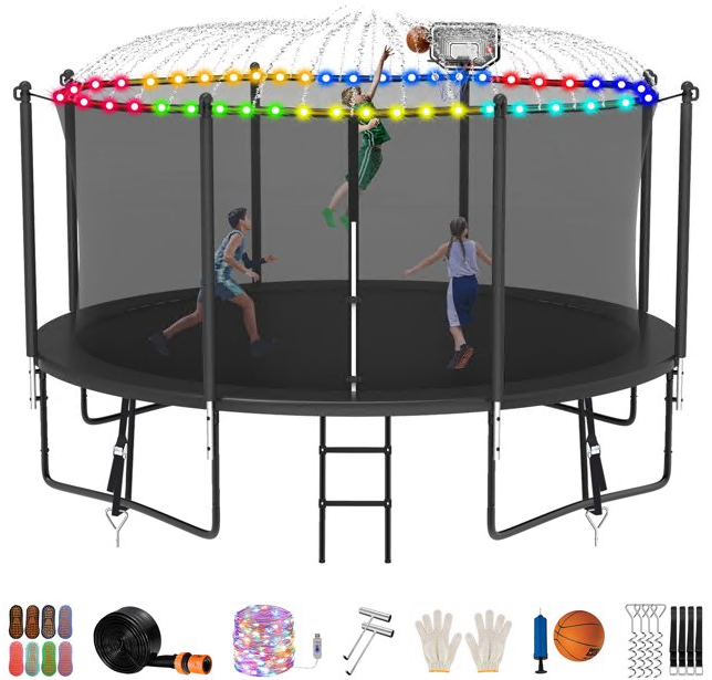 You're viewing: Jump Into Fun Trampoline 8FT 10FT 12FT 14FT 15FT 16FT, Trampoline for Adults and Kids with Enclosure, Basketball Hoop, Wind Stakes, LED Light and More Gifts, 1200LBS Outdoor Recreational Trampolines$799.99