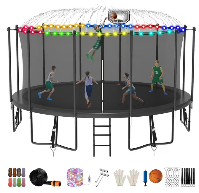 You're viewing: Jump Into Fun Trampoline 8FT 10FT 12FT 14FT 15FT 16FT, Trampoline for Adults and Kids with Enclosure, Basketball Hoop, Wind Stakes, LED Light and More Gifts, 1500LBS Outdoor Recreational Trampolines$1,099.99