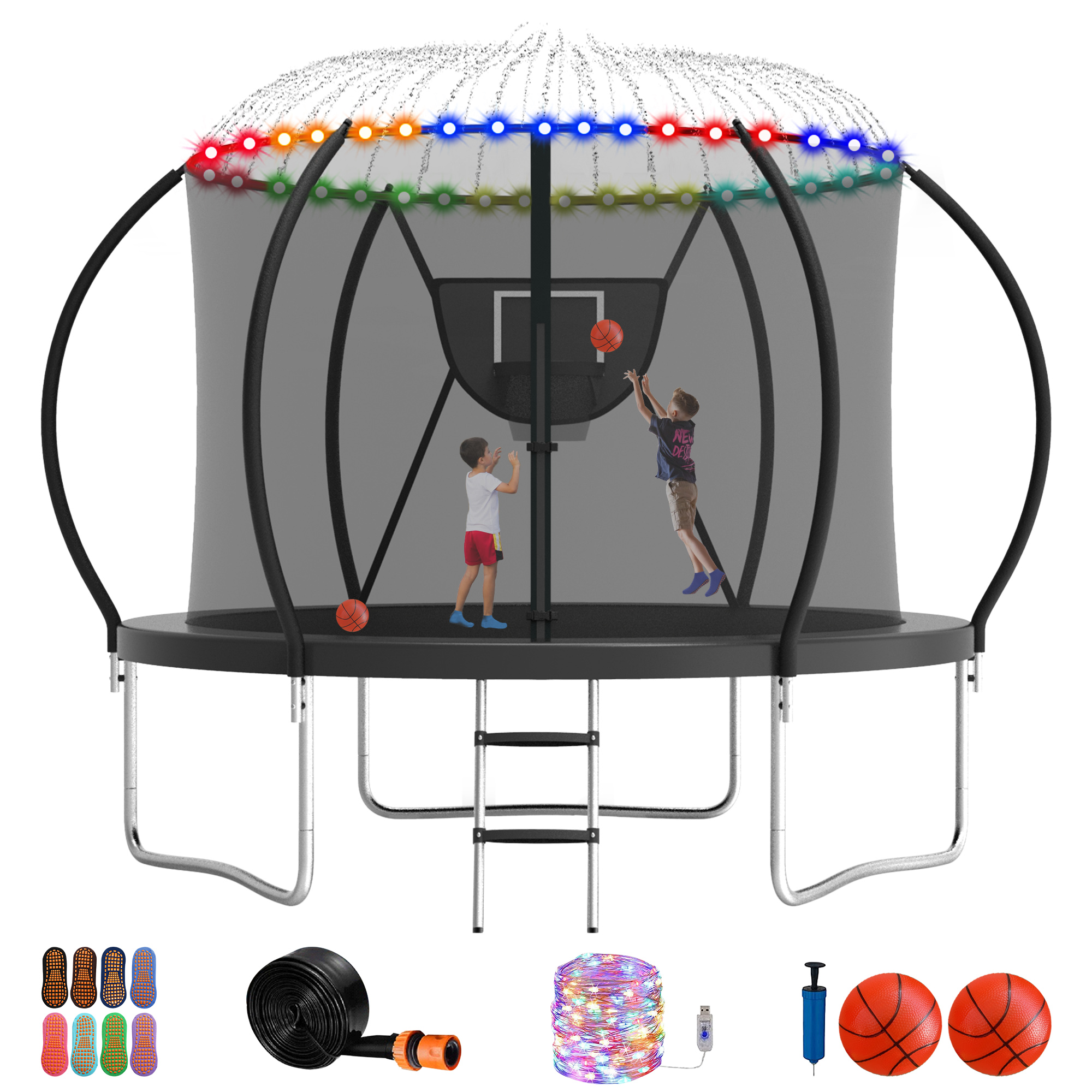 You're viewing: Jump Into Fun Trampoline 8FT, 800LBS Trampoline for 2-3 Kids, Trampoline with Enclosure, Basketball Hoop, 2 Balls and More Gifts, Outdoor No Gap Design Pumpkin Trampoline for Adults$479.99