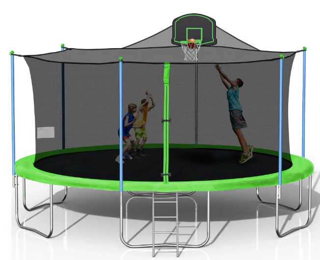 Jump Into Fun 16 FT Trampoline for Adults and Kids, Outdoor Trampoline with Basketball Hoop, Enclosure, Waterproof Mat and Ladder, Trampoline for Backyard for 8-9 Kids